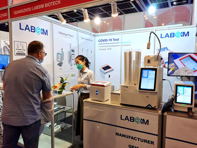 本屆展會(huì)上(shàng)藍(lán)勃生(shēng)物(wù)攜幹式熒光(guāng)免疫分(fēn)析儀AFS-1000、手持式幹式熒光(guāng)免疫∏分(fēn)析儀AFS430、膠體(tǐ)金(jīn)免疫層析分(fēn)析儀AGS1000,與組織盒激光(guāng)打号機(jī)TB586UV、載玻片熱(rè)轉印打号機(jī)G304∑等明(míng)星産品亮(liàng)相(xiàng),展會(huì)現(xiàn)場(chǎng)吸引了(le)大(dà)批觀衆前來φ(lái)溝通(tōng)交流。